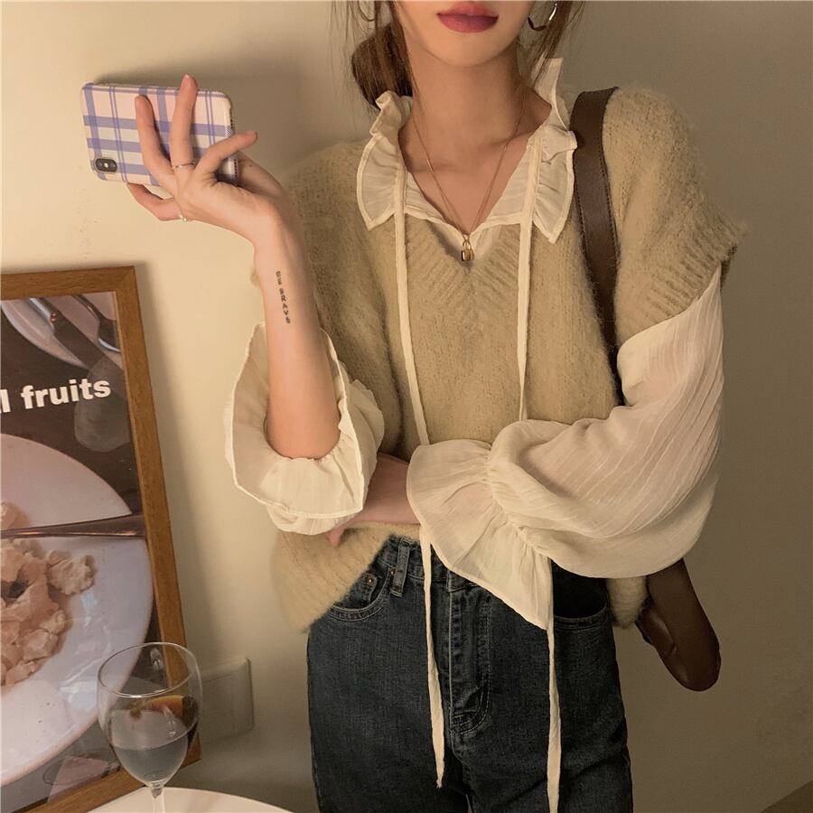 ニットレディーススプリングルーズVネックノースリーブセーター ジャケット 春物 セブンプリンセス30754769295