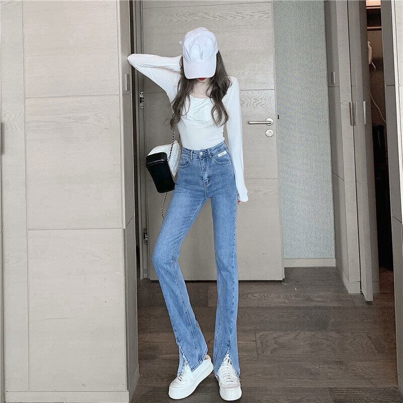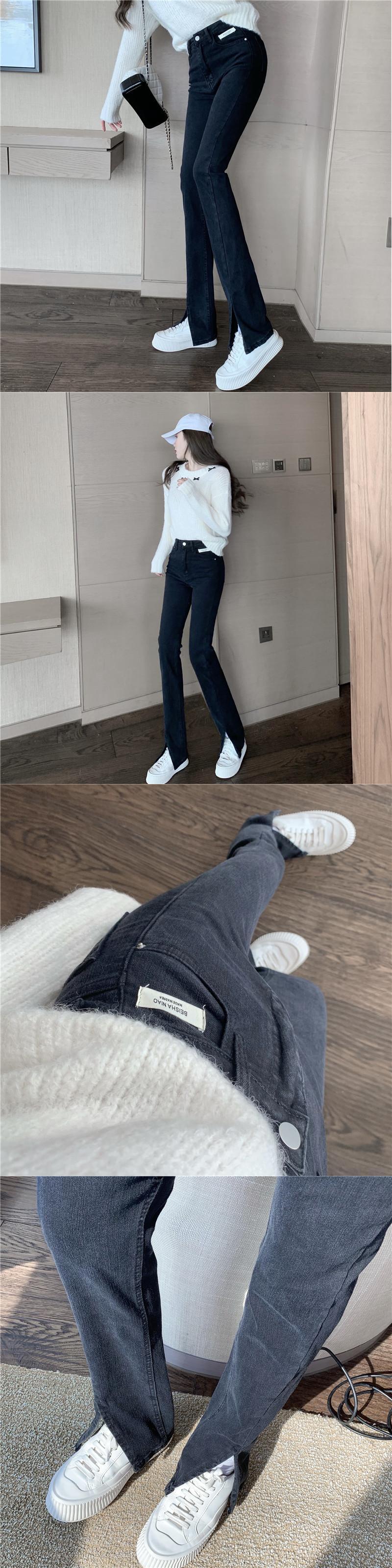 ジーンズ オータムウィンター薄手ベルベットハイウェストウェストパンツ レッド 秋物 冬物 セブンプリンセス97095081353