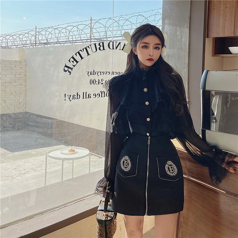 レーススタイルシャツ レディーススプリングスリーブカラールーズトップス ロング 春物 セブンプリンセス33488181485