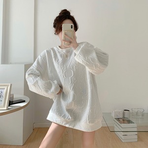 セーター レディーススプリングサマールーズラウンドネックプルオーバー ホワイトトップス 春物 夏物 Oネック セブンプリンセス61468583907