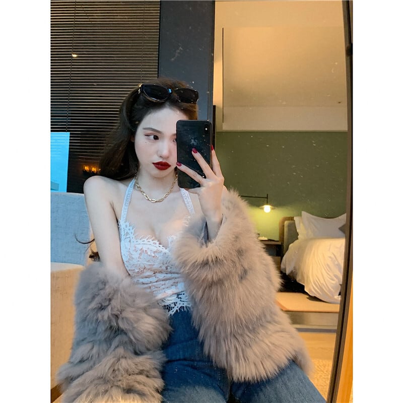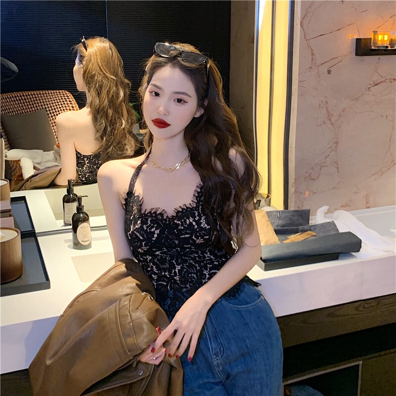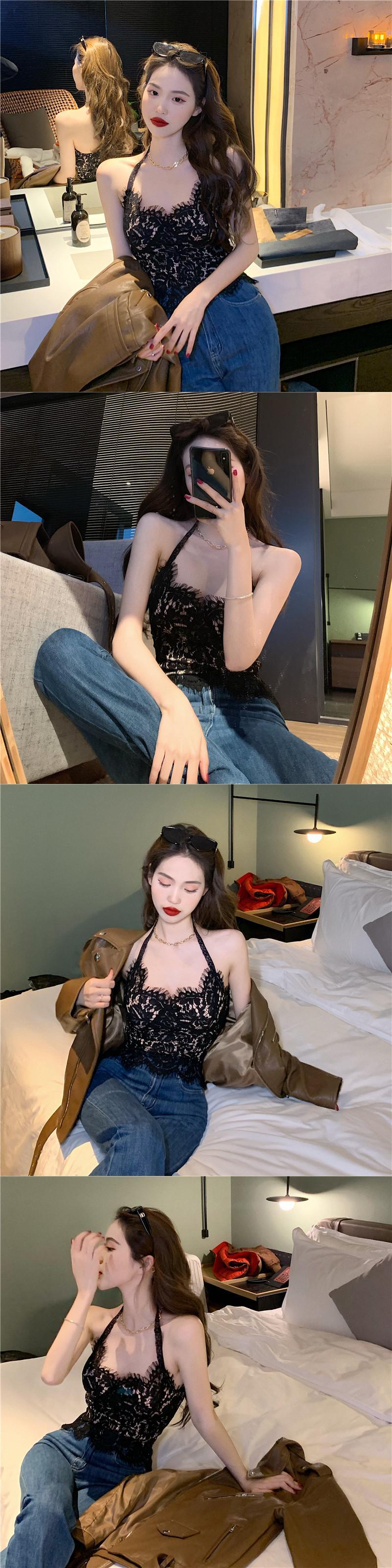 レッドレースホルターノースリーブトップス スリムショートシャツ レディース スプリング 春物 セブンプリンセス1011688885
