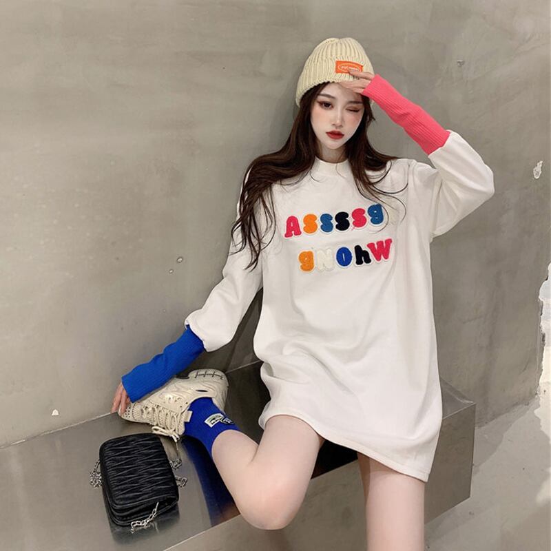 ホワイトTシャツ シャツ レディースオータムウィンタールーズスタイルトップス ロング 秋物 冬物 セブンプリンセス70334970701
