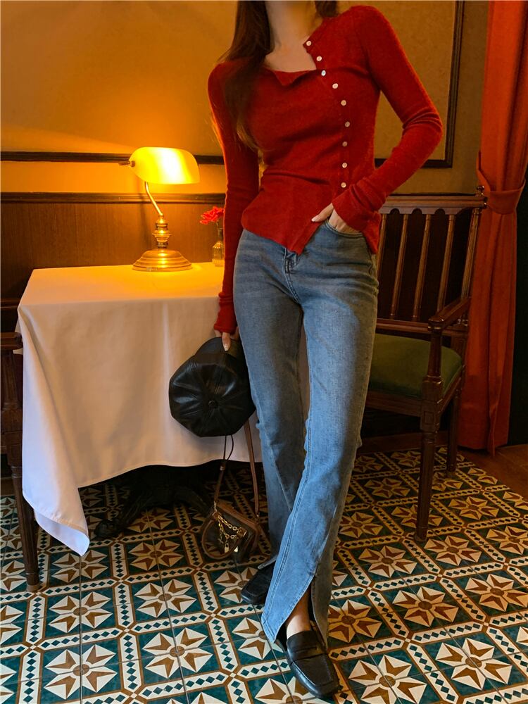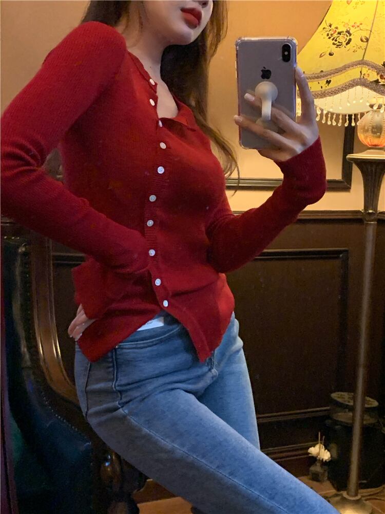 レッドセーター シャツ レディーススプリングサマースリムニットカーディガントップス ロング 春物 夏物 セブンプリンセス87263994407