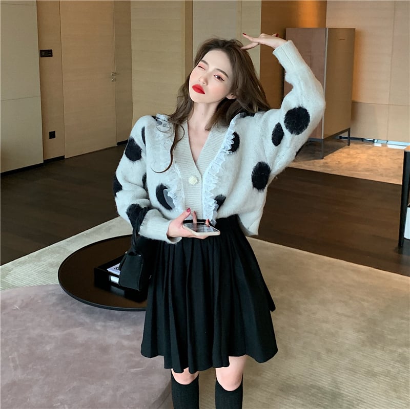 セーター スタイルレースジャケット レディースウィンタールーズVネックトップス 冬物 セブンプリンセス33992021705