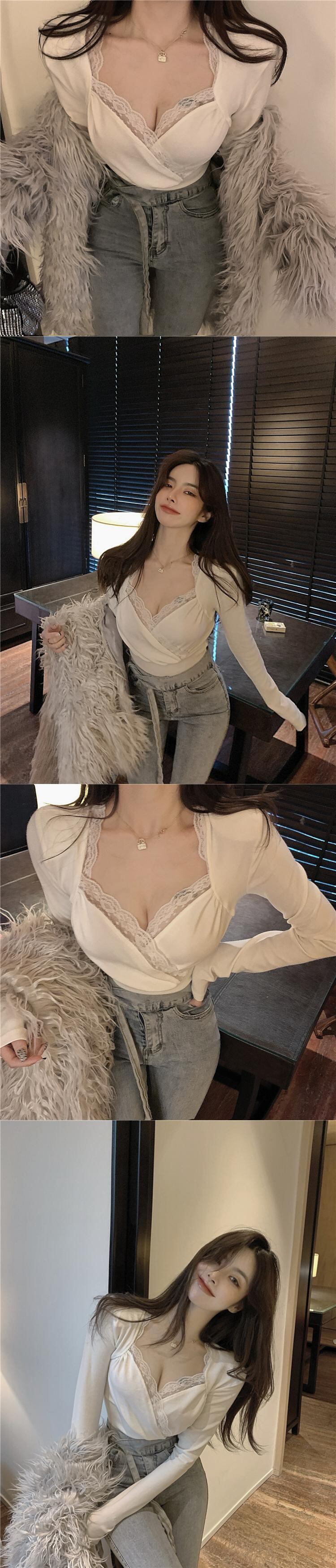 Vネックシャツ レディースオータムウィンター レース 秋物 冬物 セブンプリンセス31911669705