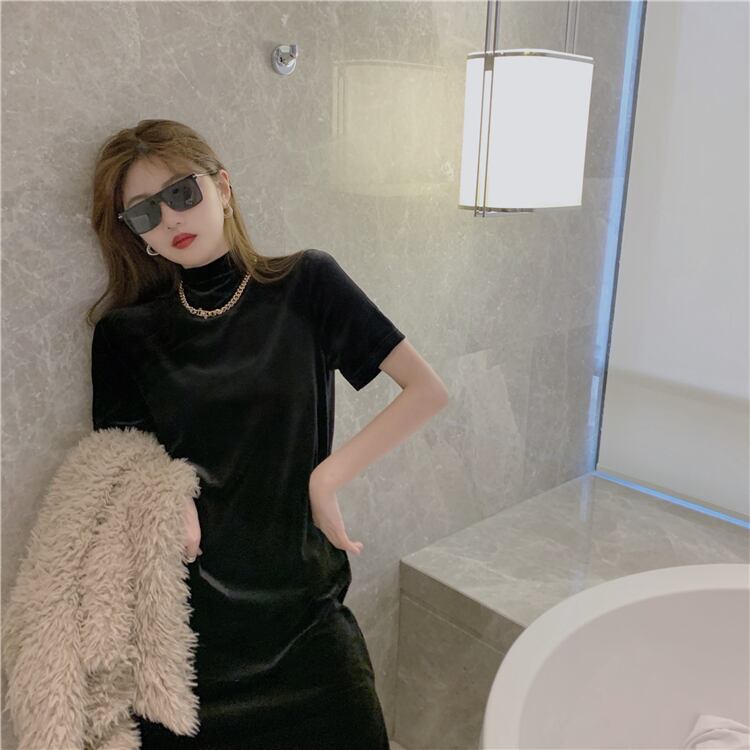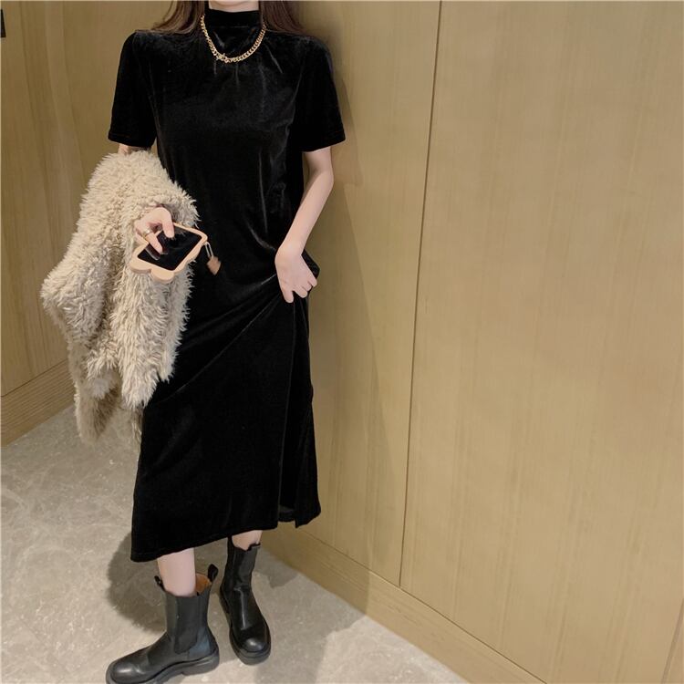 カラーベルベットドレス オータムウィンタースタンダードウェストロングスカート レトロ 秋物 冬物 セブンプリンセス46240806658