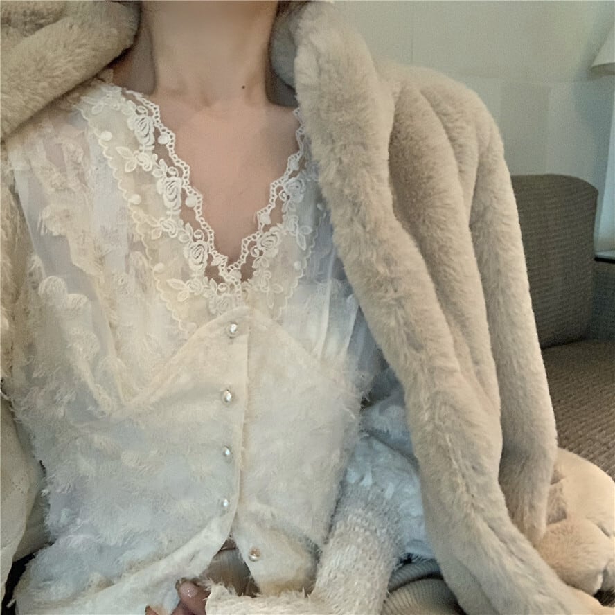 レディースウィンターファーコート レースシャツ セーター コットン 冬物 セブンプリンセス74453135050