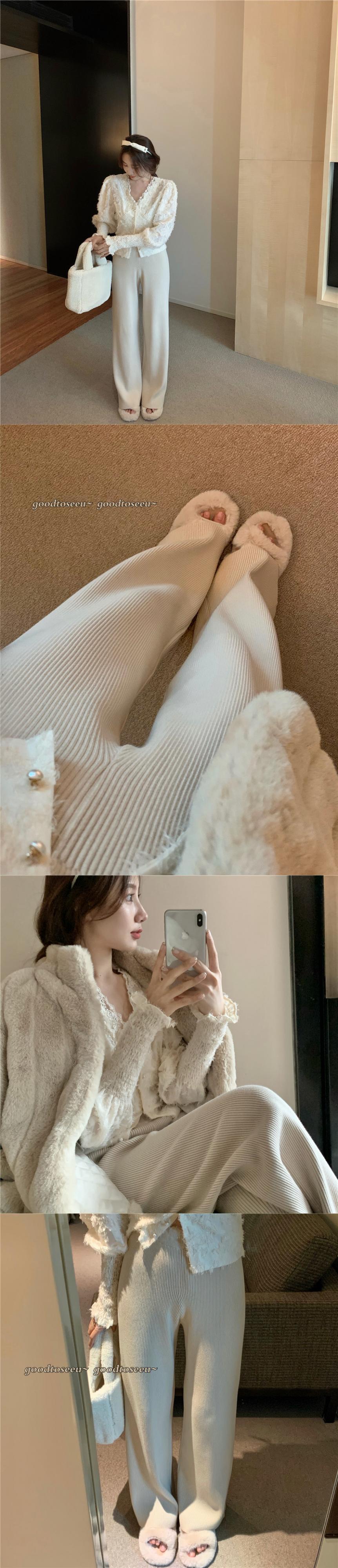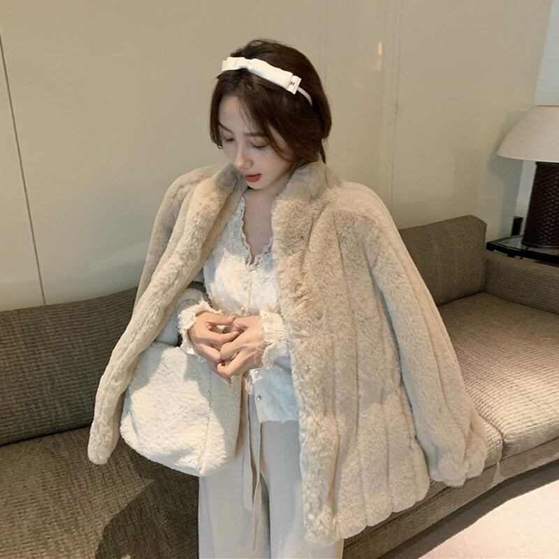 色:レースのアプリコット,ベージュのファーコート,ウールの厚手のパンツ