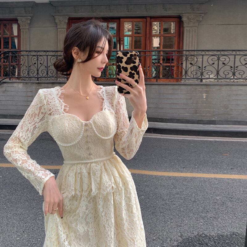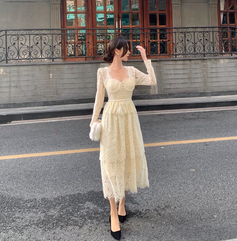レースドレス スプリングサマーカラースタイルスカート ウェスト ロング エレガント 春物 夏物 スクウェア セブンプリンセス33578834459