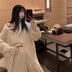 クロスVネックホワイトセーター レディースルーズスプリングサマートップス ロング 春物 夏物 セブンプリンセス63842944270