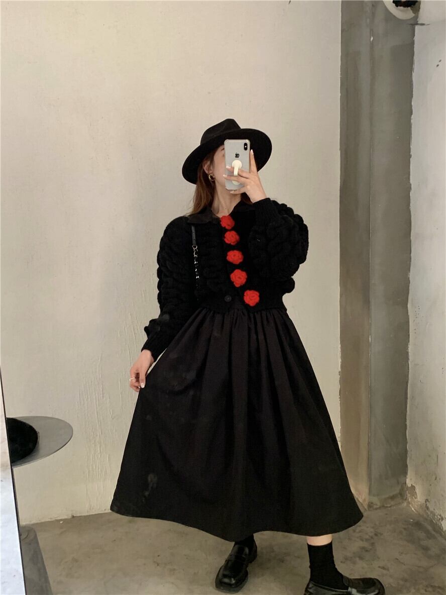 色:白いセーター,ロングスカート,黒いセーター,赤いセーター,ベルベットスカート