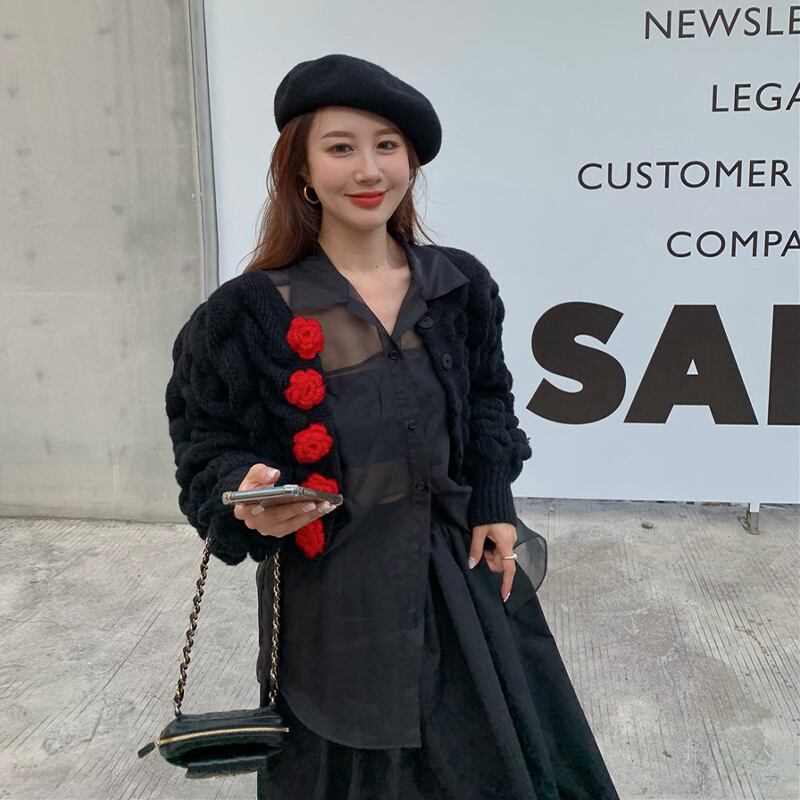 カーディガンセーター オータムウィンタースタイルショートニットジャケット 大人ガーリー スウィート キュート カジュアル 秋物 冬物 フラワーデザイン セブンプリンセス39752930030