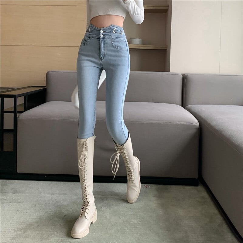 ハイウェストジーンズ オータムウィンターパンツ スリム レッド 秋物 冬物 セブンプリンセス66706910334