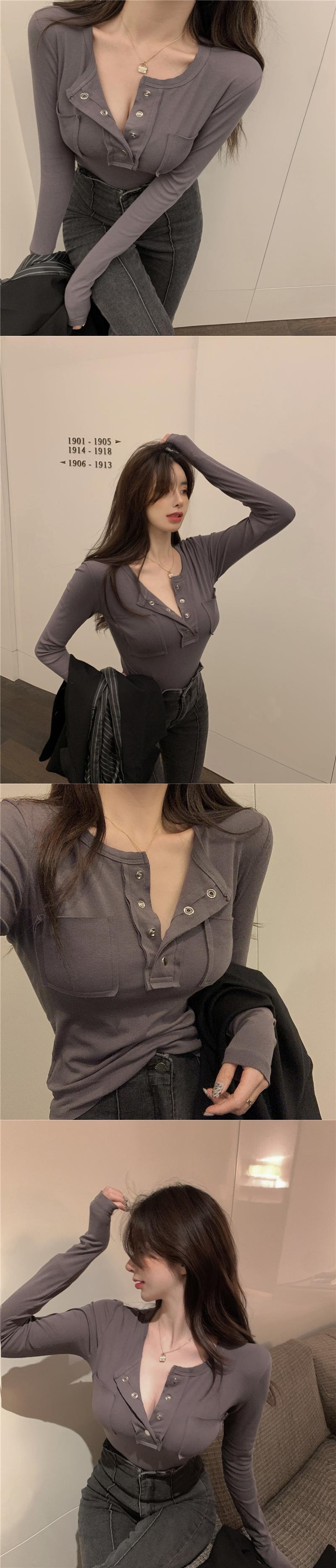 ラウンドネックシャツ スプリングサマースリムTシャツ ソリッド カラートップス ロング 春物 夏物 Oネック ソリッドカラー セブンプリンセス63574654166