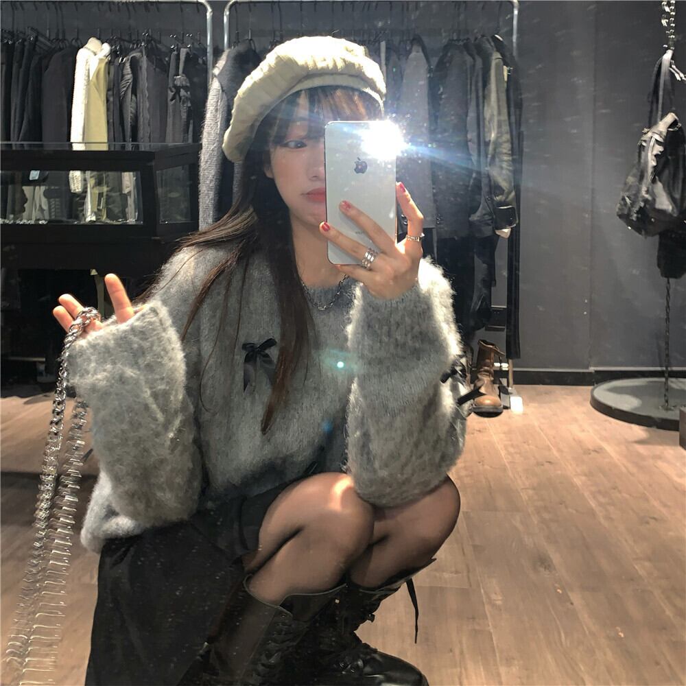 スタイルルーズセーター レディースオータムウィンターリボンプルオーバー トップス 大人ガーリー スウィート キュート カジュアル 秋物 冬物 セブンプリンセス23535762384