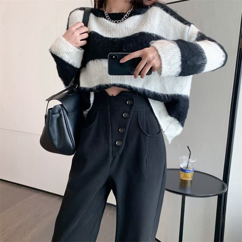 コーデュロイパンツ スプリングサマースタイルハイウェストウェストベルベットルーズ 春物 夏物 セブンプリンセス39810476982