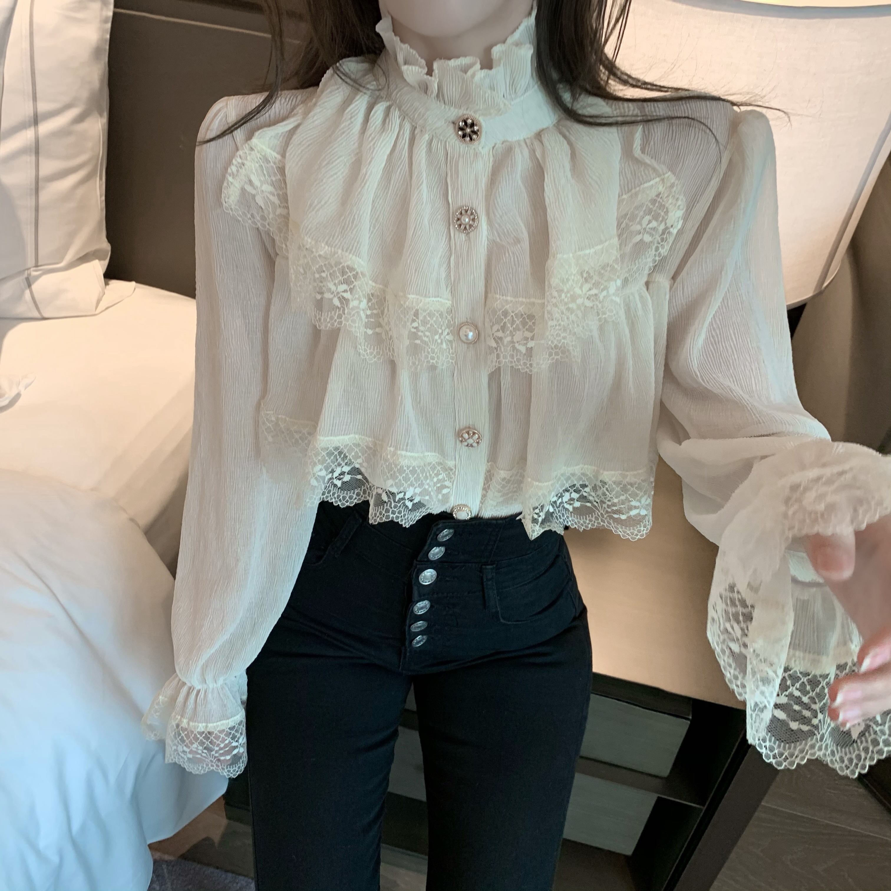 シフォンシャツ スプリングサマーカラールーズレース ロング 春物 夏物 ステッチ セブンプリンセス65392442277