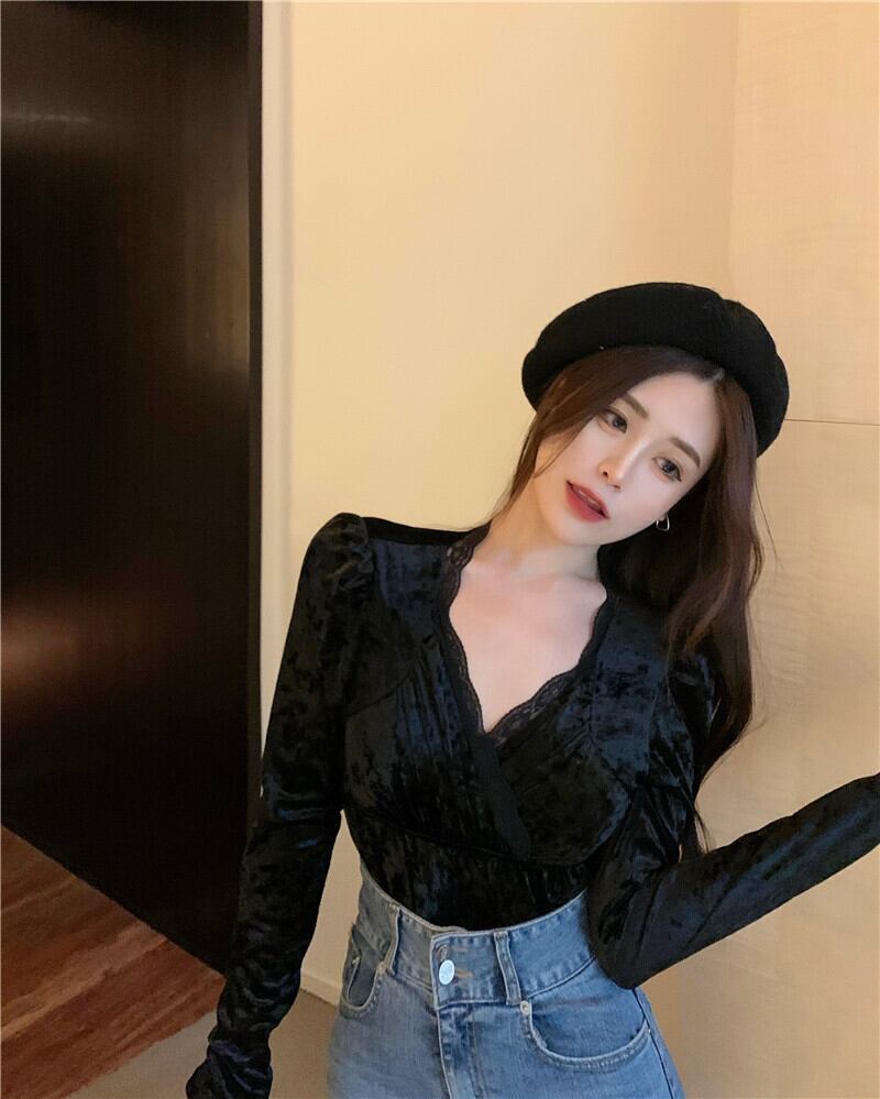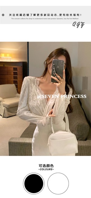 レースシャツ スプリングサマーVネックブラウス ショート ロング 春物 夏物 ステッチ セブンプリンセス50682127040