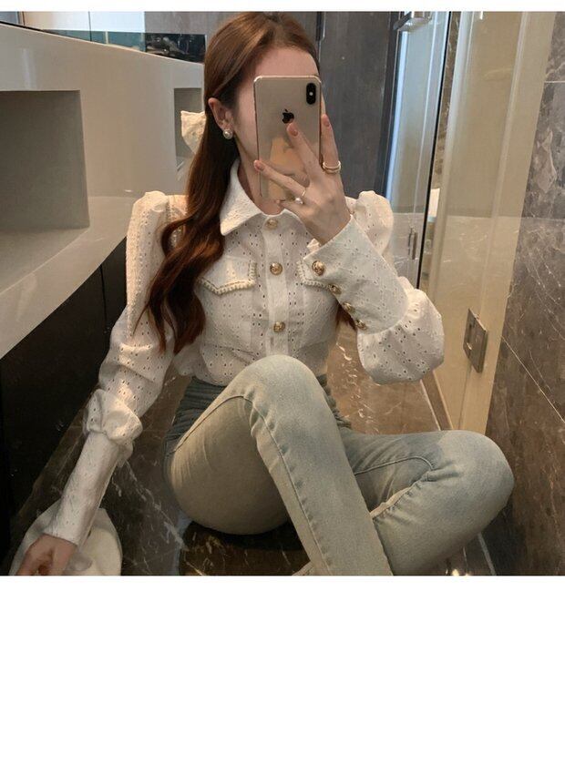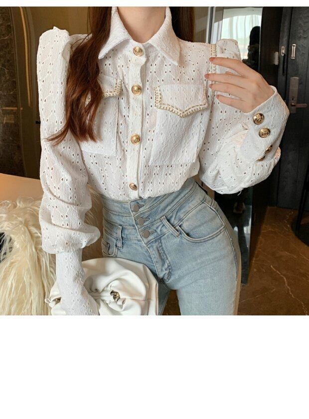 ホワイトシャツ スプリングサマースタンダード ロング レトロ 春物 夏物 セブンプリンセス65762563046