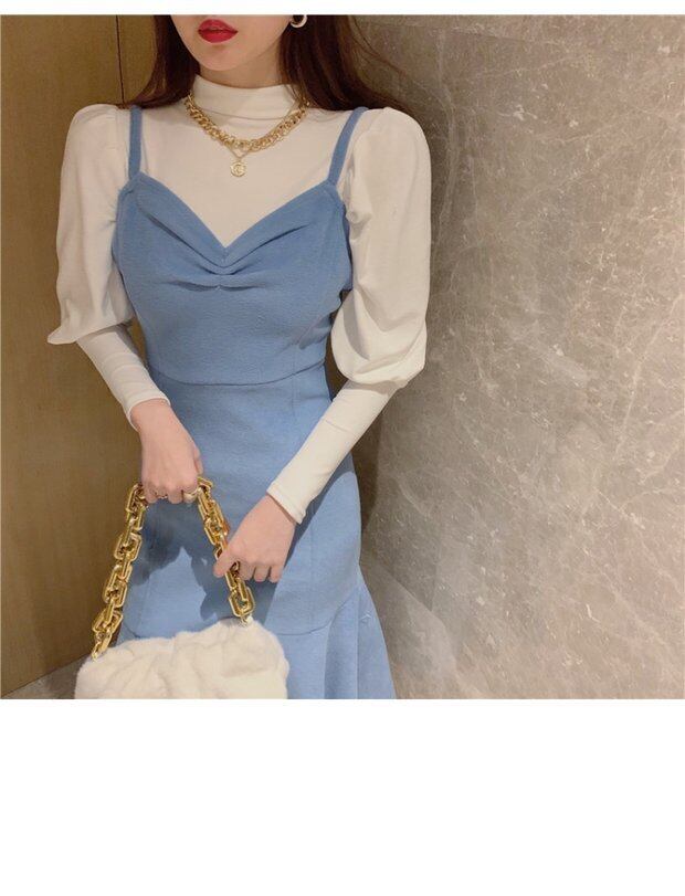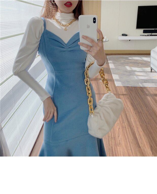 色:ホワイトボトミングシャツ,青い服