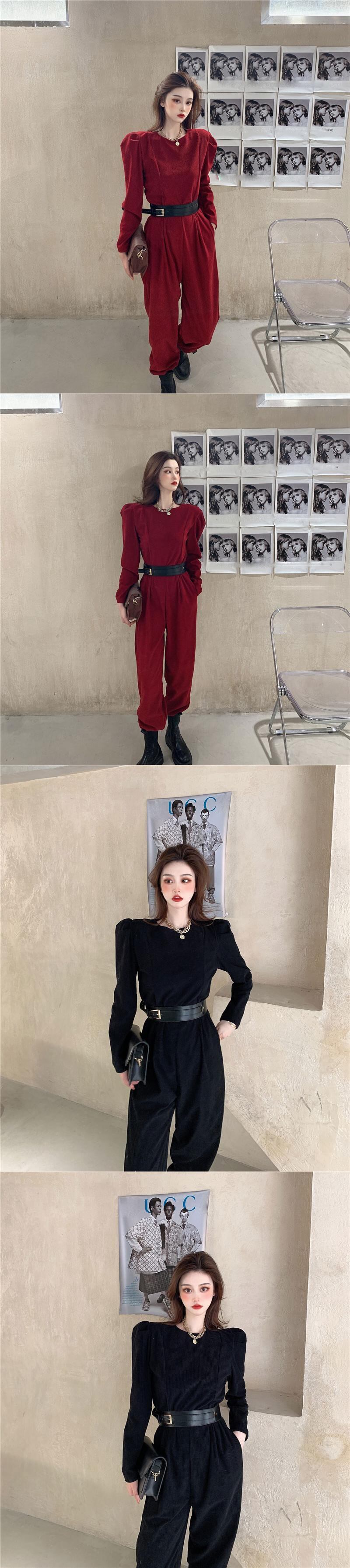 色:黒のジャンプスーツ,赤いジャンプスーツ,ベルト