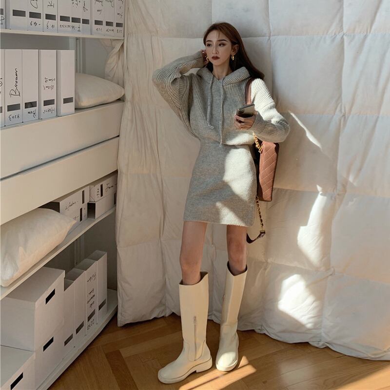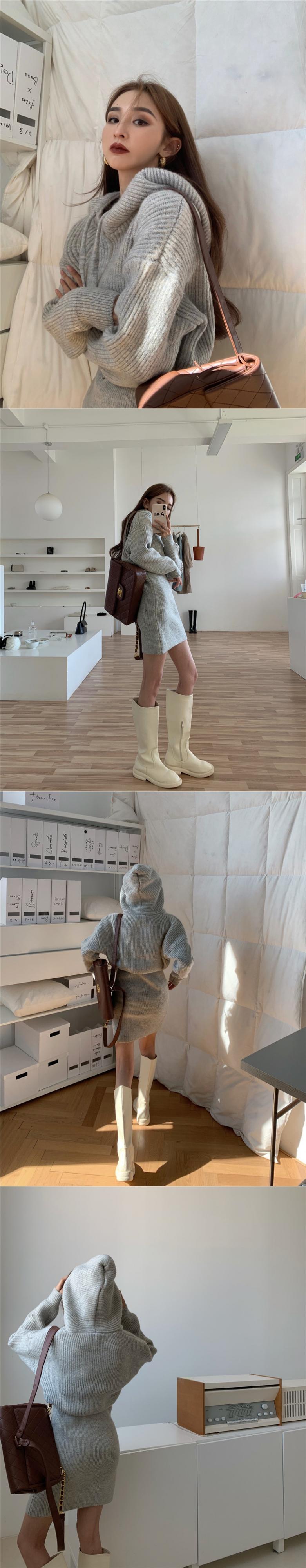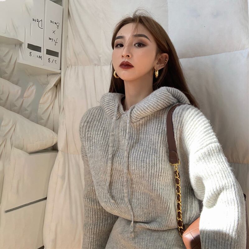 フードニットドレス スプリングサマースタイルセーター ウェストスカート ロング 春物 夏物 セブンプリンセス22377462811