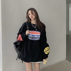 セーター スプリングサマープリントルーズラウンドネックプルオーバー トップス ロング 春物 夏物 Oネック セブンプリンセス57674144646