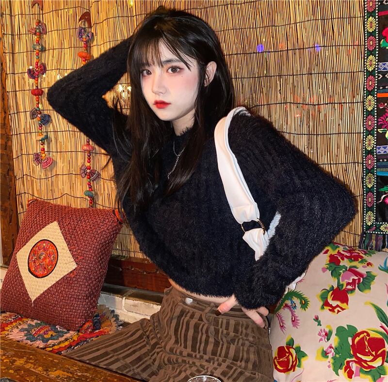 セーター シャツ オータムウィンタースタイルスリムショートトップス プルオーバー ロング 秋物 冬物 セブンプリンセス23421920471
