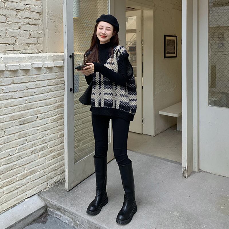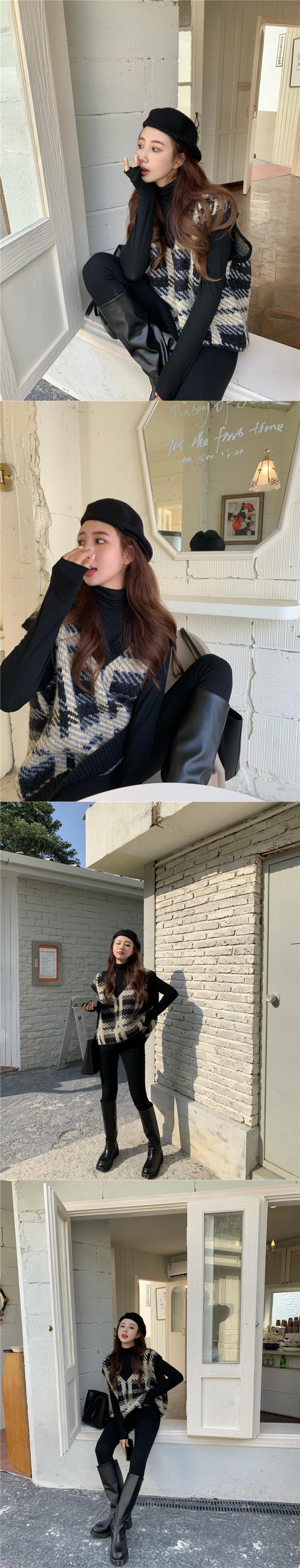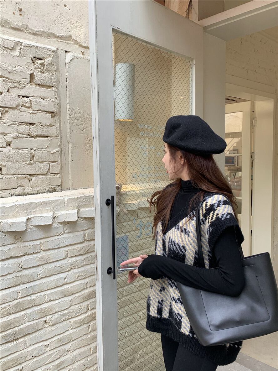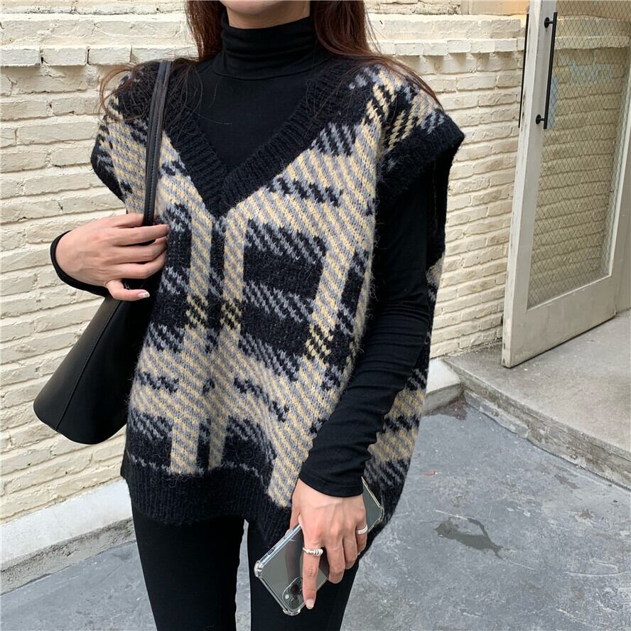 格子柄ニットセーター ジャケット スプリングサマースタイルスタンダードVネック レトロ 春物 夏物 セブンプリンセス69318079223