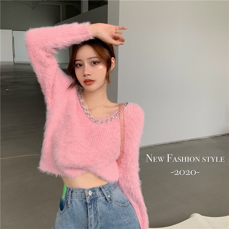 セーター オータムウィンターチェーン Vネックスリムショートトップス ロング 秋物 冬物 セブンプリンセス97871908185