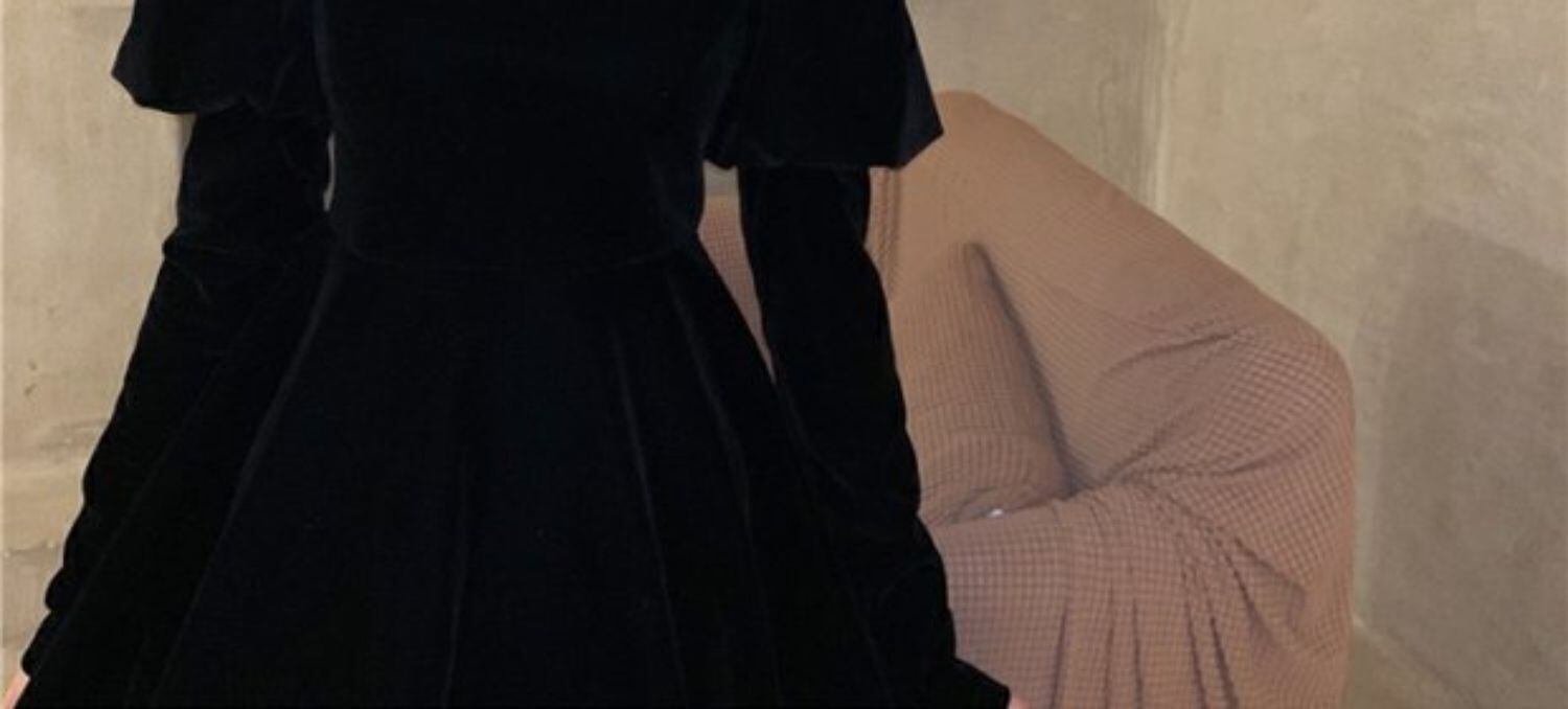 スタイルブラックドレス スプリングサマースタンダードカラースリーブウェストベルベットスカート 長袖 ロング レトロ 春物 夏物 スクウェア セブンプリンセス40978437372