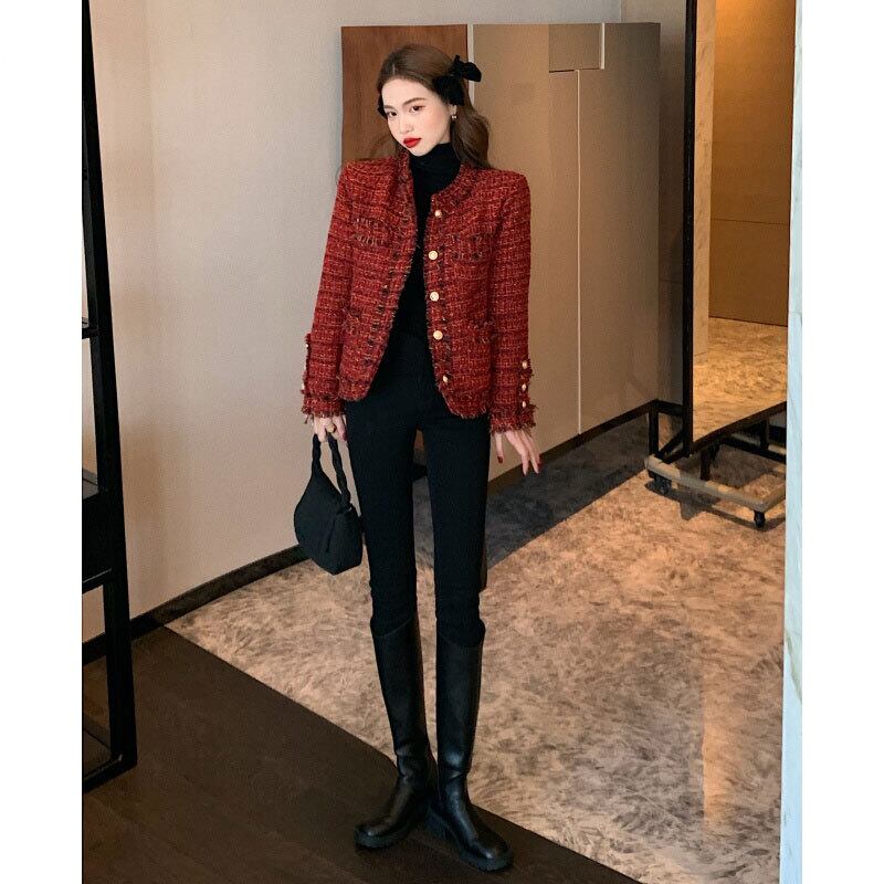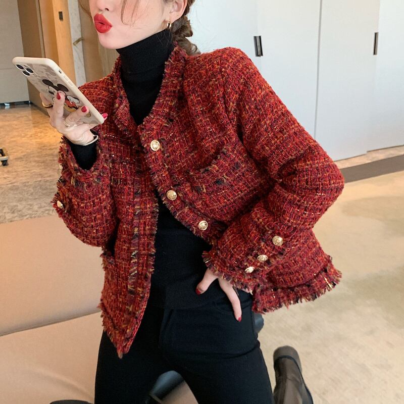 スタンダードレッドツィードスプリングサマージャケット スタイルトップス レトロ 春物 夏物 セブンプリンセス40422174992