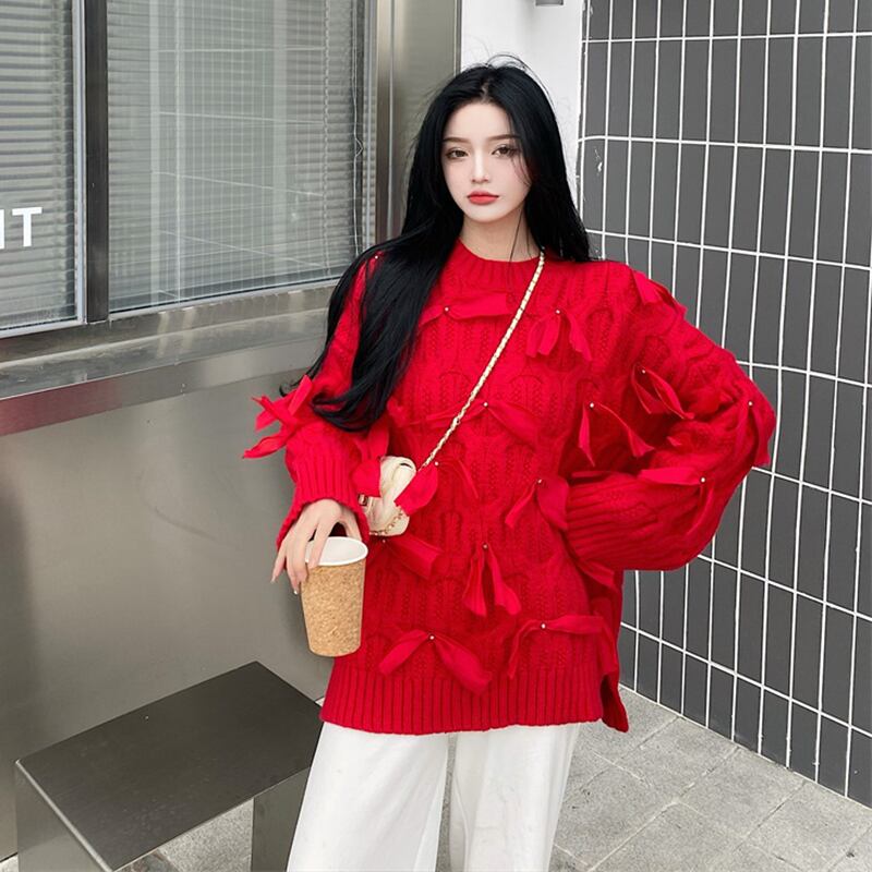 レッドリボンセーター スプリングサマールーズニットトップス レディース 春物 夏物 セブンプリンセス66427918352