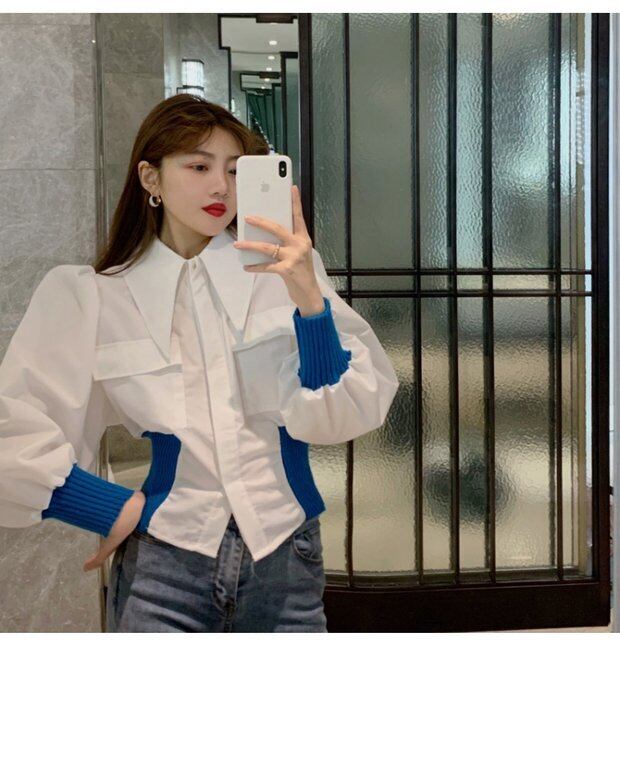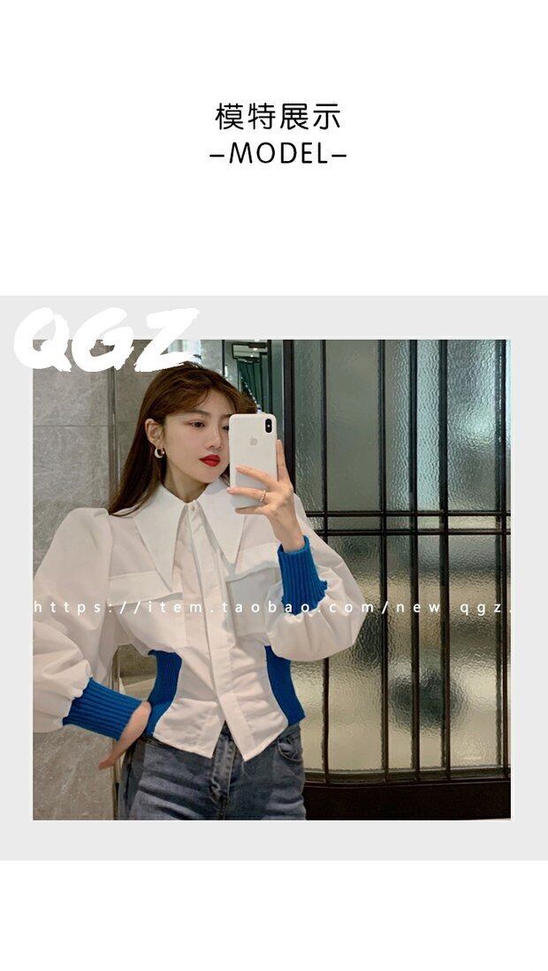 ホワイトスリーブシャツ トップス スプリングサマースタンダードルーズウェスト ランタンスリーブ レトロ 春物 夏物 セブンプリンセス16959785078