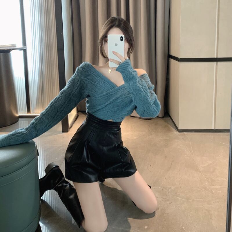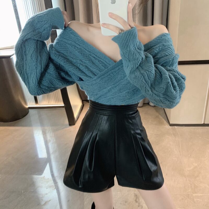 色:赤いセーター,青いセーター,アプリコットショーツ,黒のショートパンツ