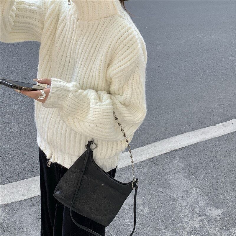 ホワイトカーディガンセーター スプリングオータムショートルーズニットジッパージャケット トップス 春物 秋物 セブンプリンセス65573246842
