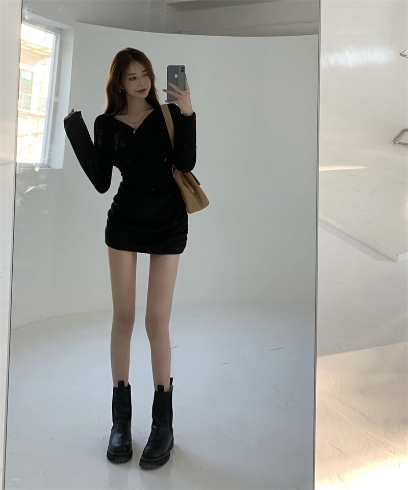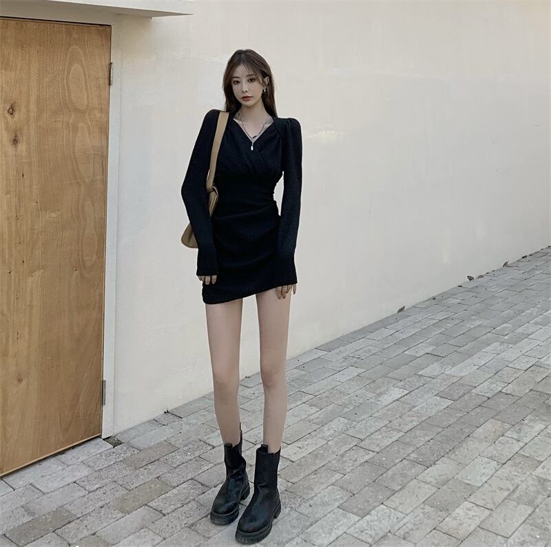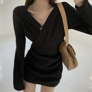 Vネックドレス スプリングサマーウェストプリーツスリム 春物 夏物 スカート セブンプリンセス30493681570