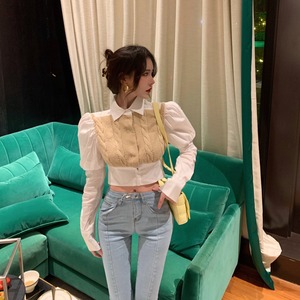 スタンダードスリーブトップス シャツ スプリングオータムスタイルウェストショート レトロ 春物 秋物 セブンプリンセス85473875331