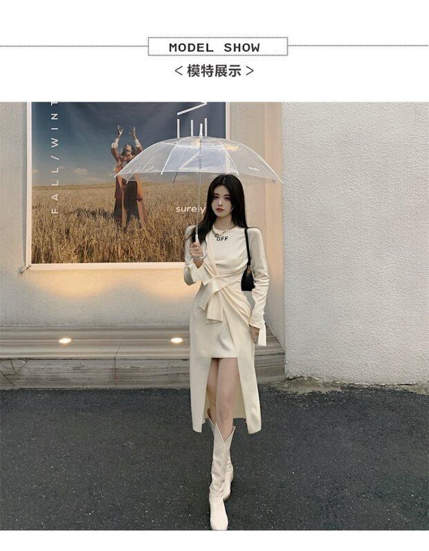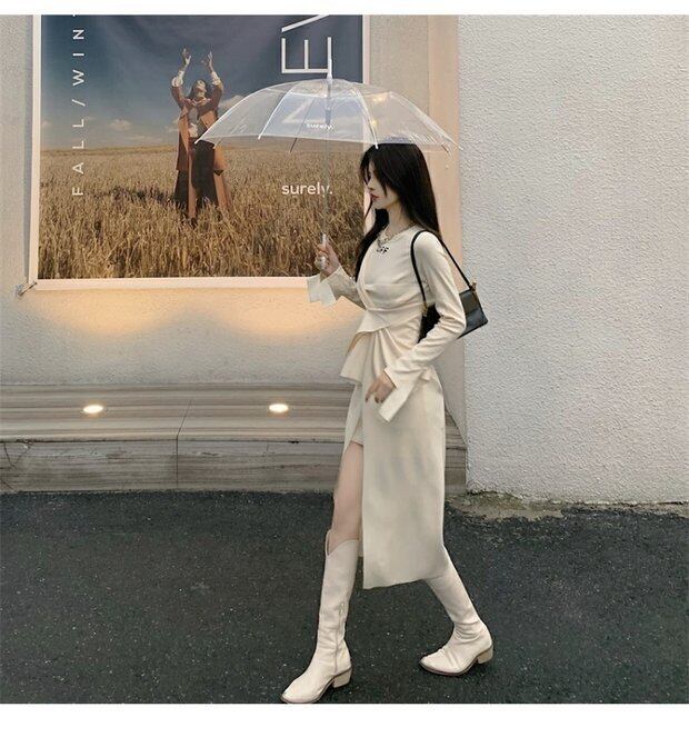 ドレス スプリングサマーニットスカート 長袖スリーブウェスト ロング 春物 夏物 セブンプリンセス84284089891
