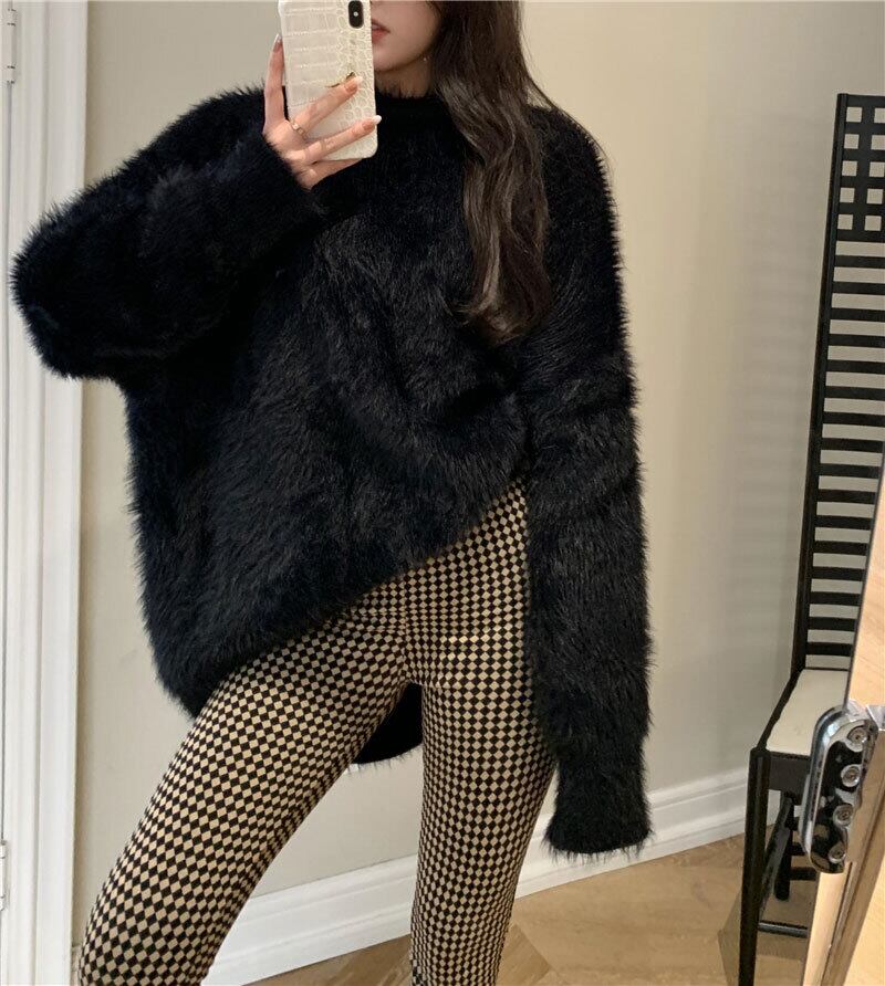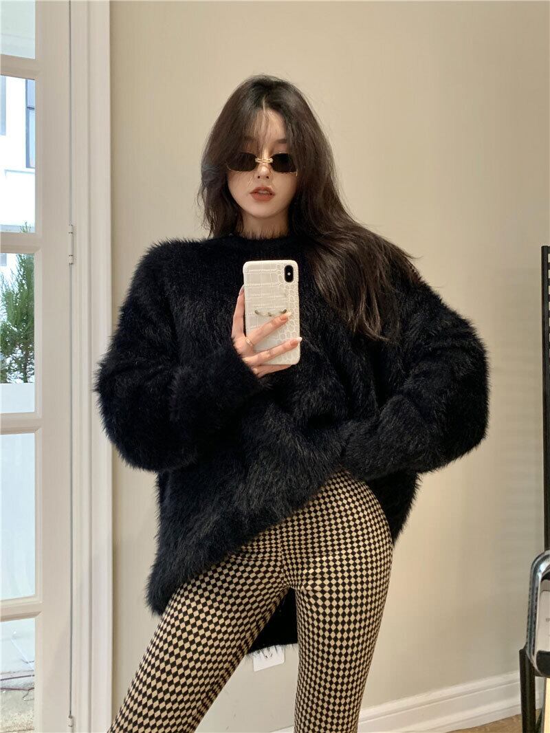 プルオーバー ブラックセーター オータムウィンタールーズラウンドネックトップス 秋物 冬物 Oネック セブンプリンセス93213813654