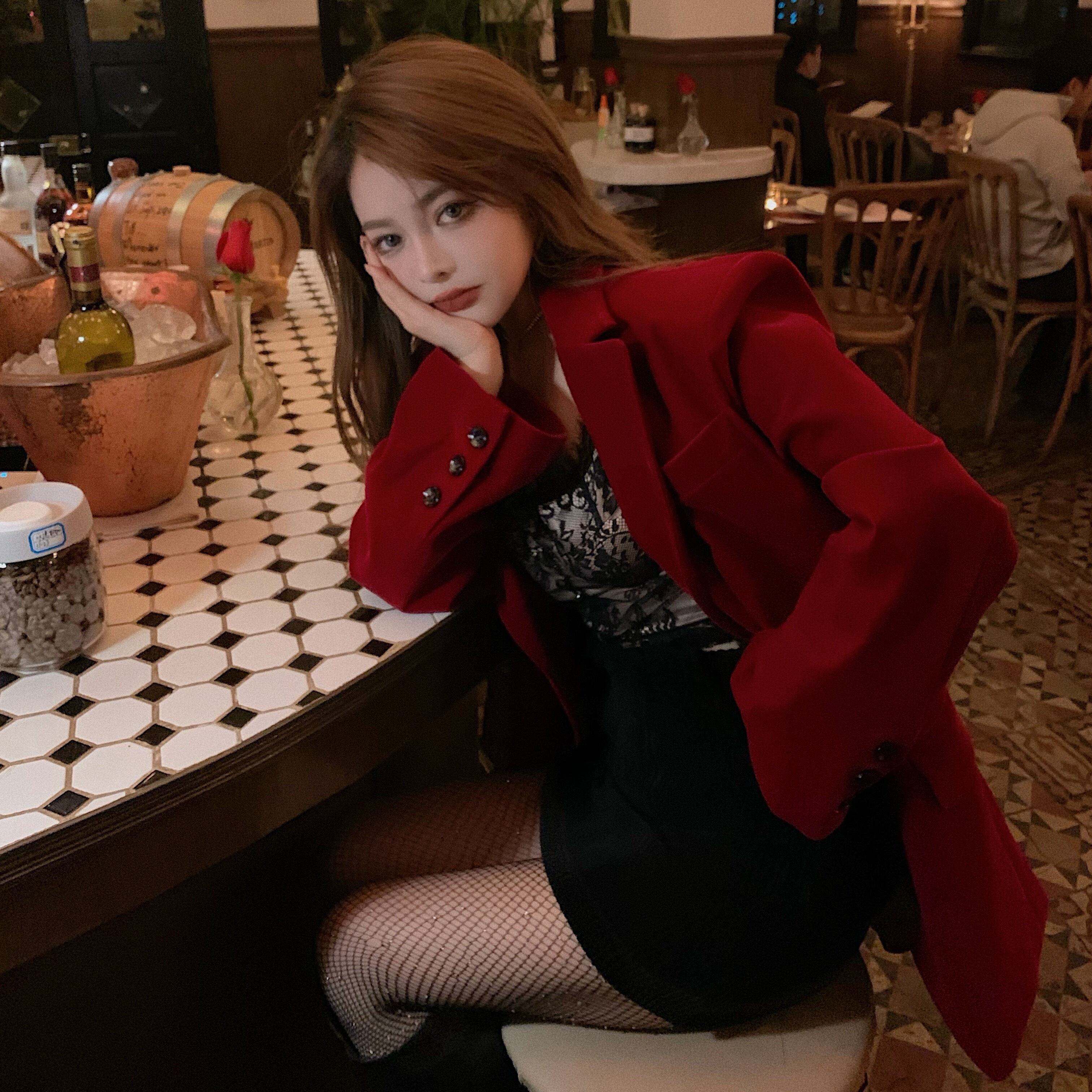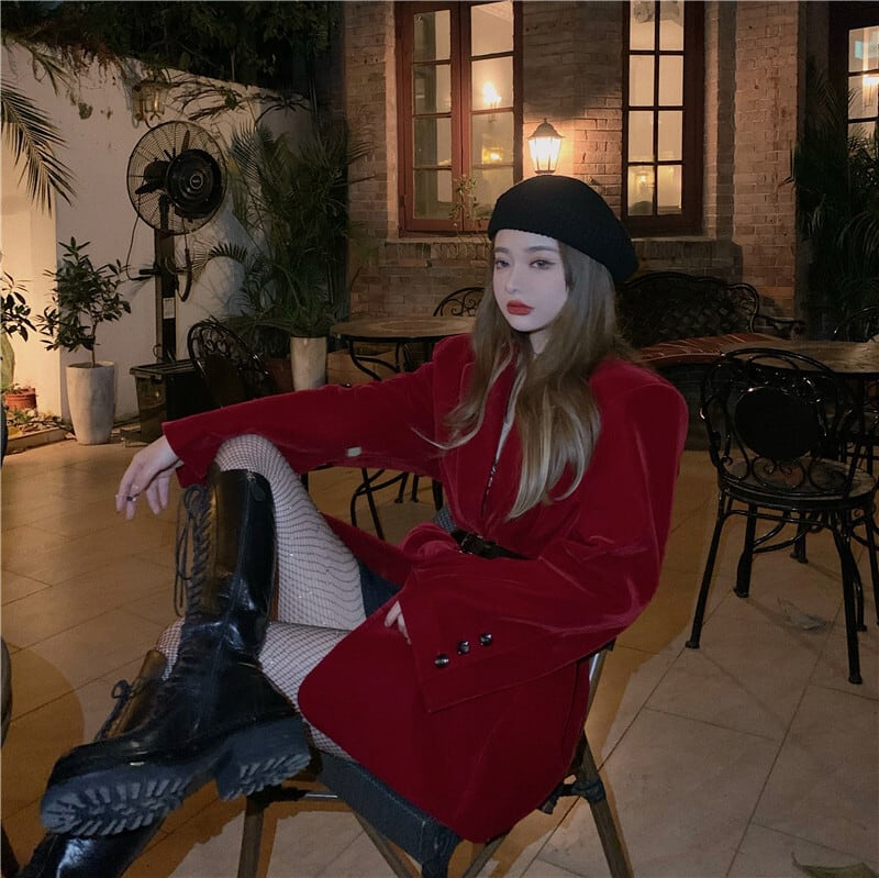 スタンダードレッドベルベットジャケット レディーススプリングサマールーズ レトロ ストリート 春物 夏物 セブンプリンセス83146838704