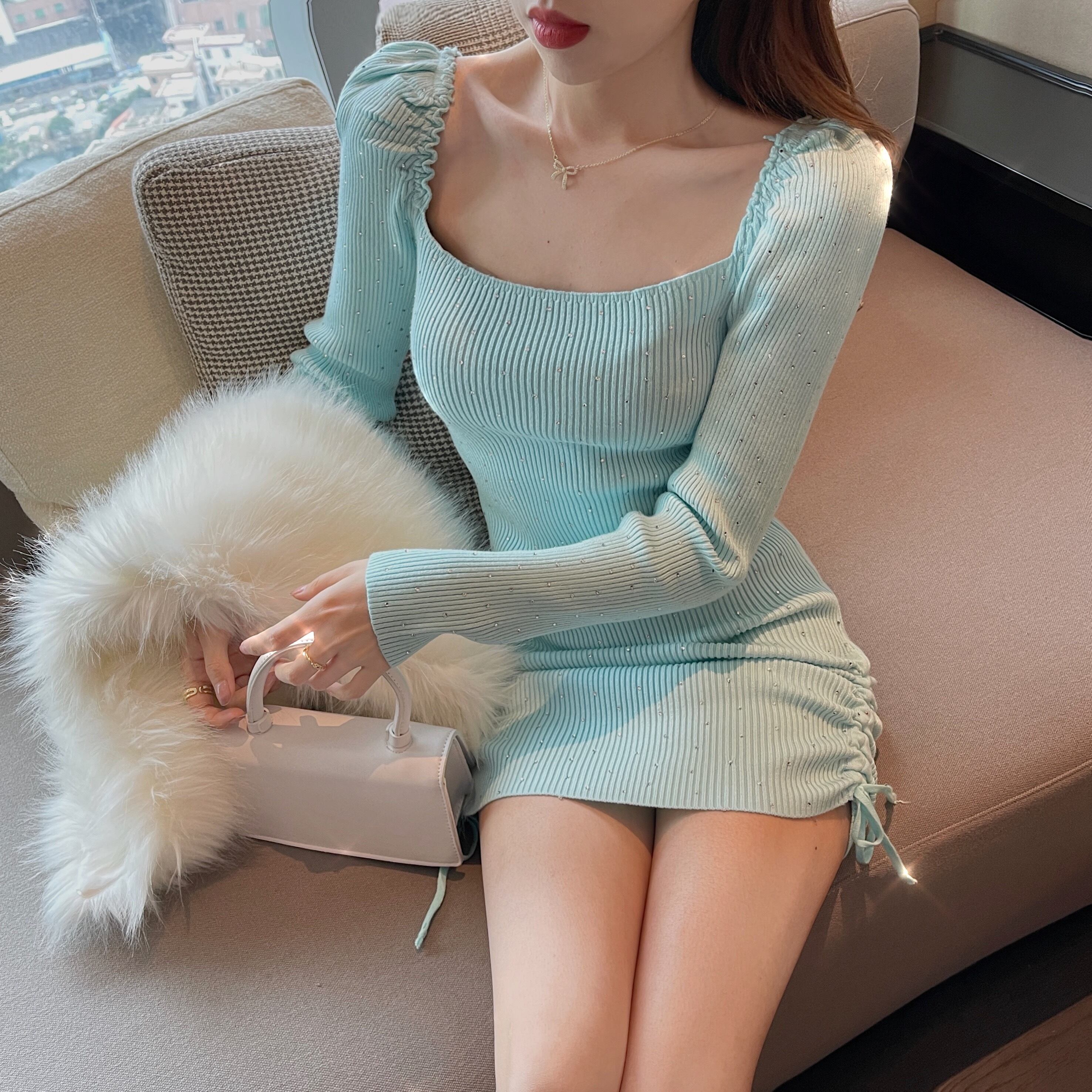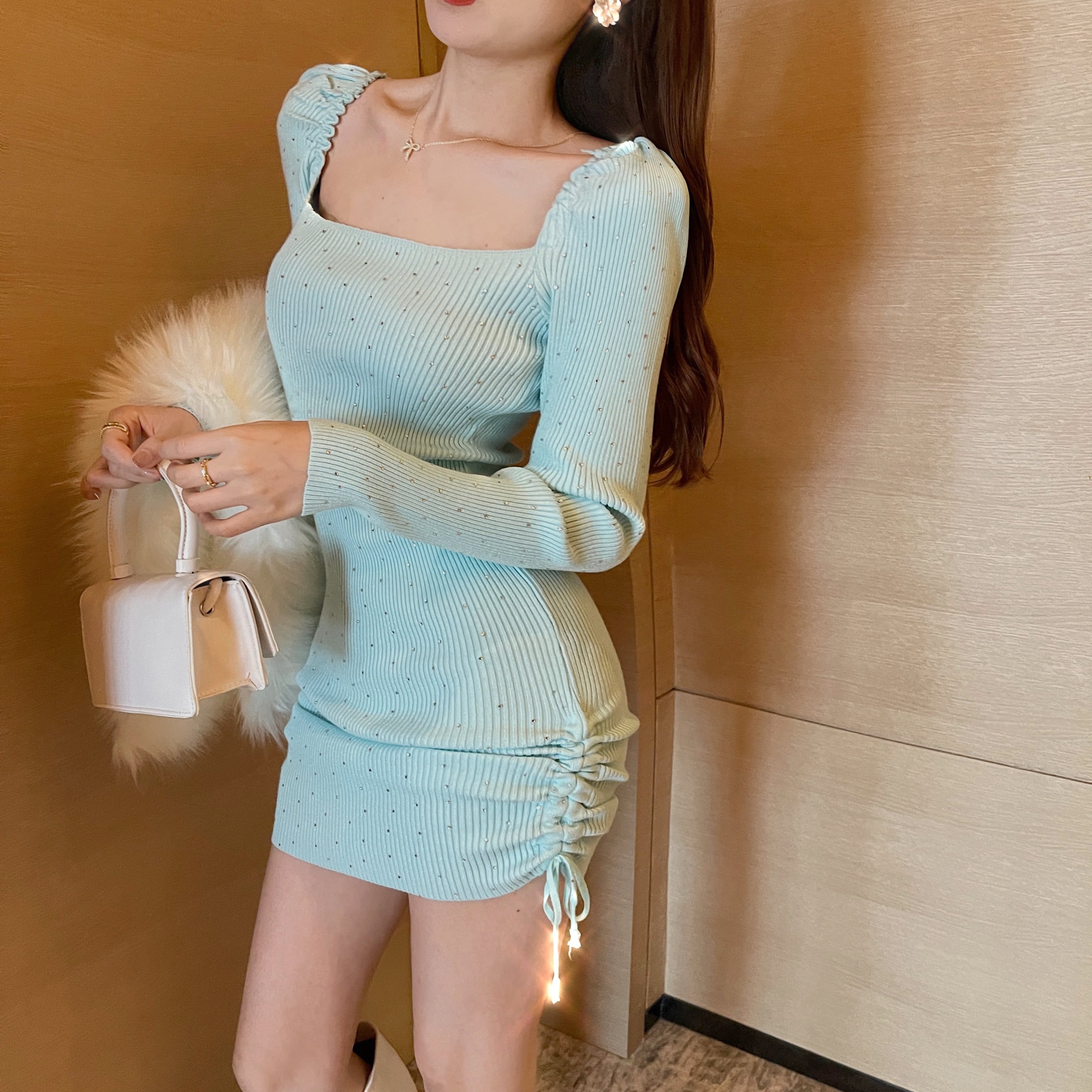 ドレス ニットスカート スプリングサマーカラー ロング 春物 夏物 スクウェア セブンプリンセス67093136941