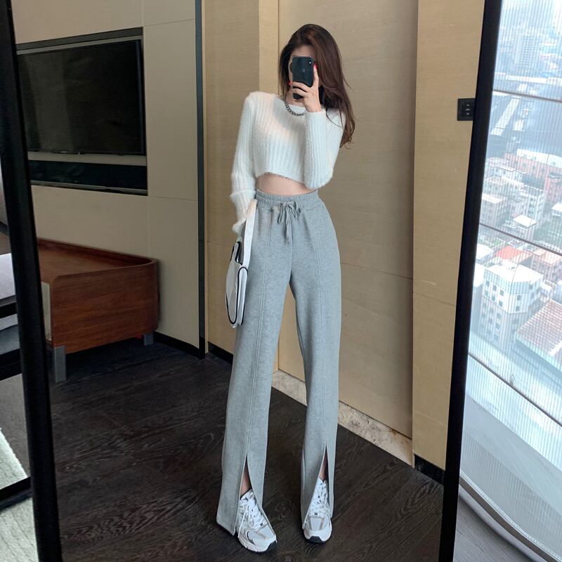 レッドスプリングオータムハイウェスト薄手パンツ ルーズグレー 春物 秋物 セブンプリンセス74189732095