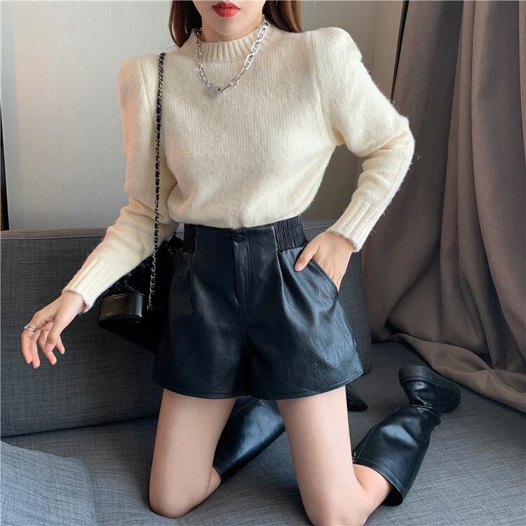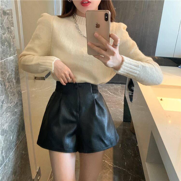 レザーパンツ スプリングサマーハイウェストルーズAライン 春物 夏物 ショーツ ブルマー セブンプリンセス30730976253