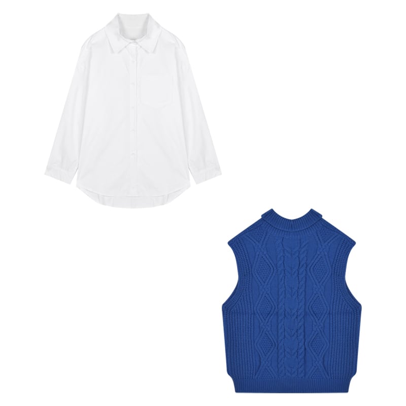 色:白のシャツ,グレーのベスト,青いベスト,アプリコットベスト