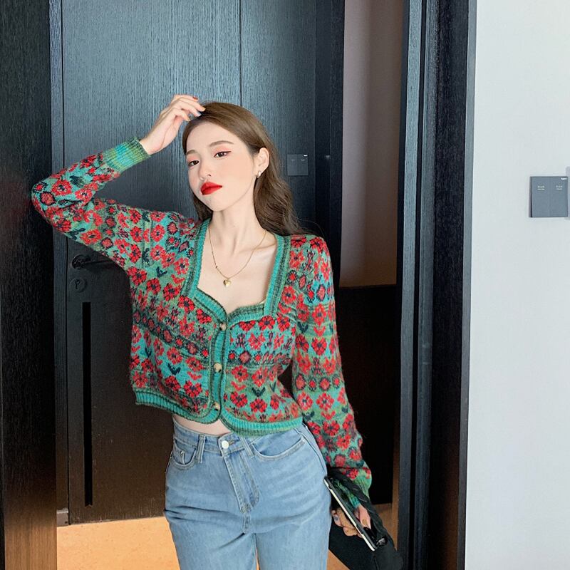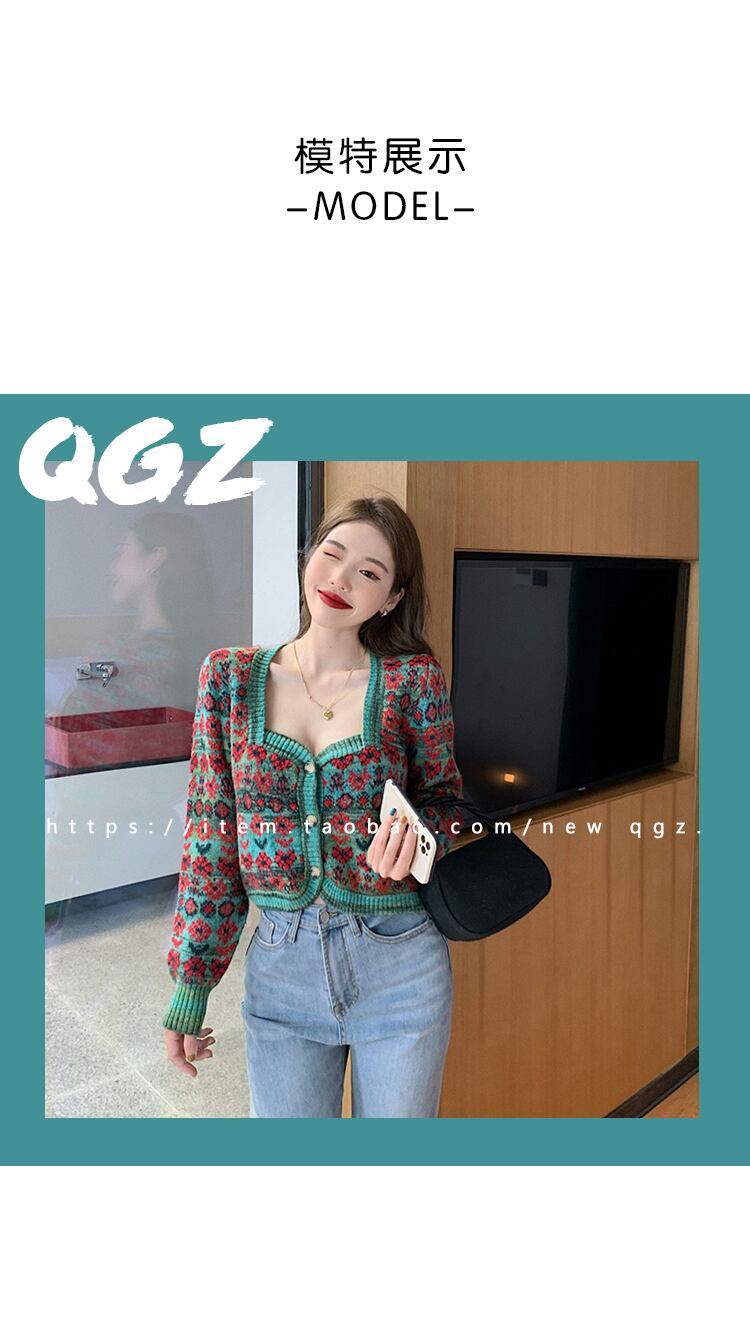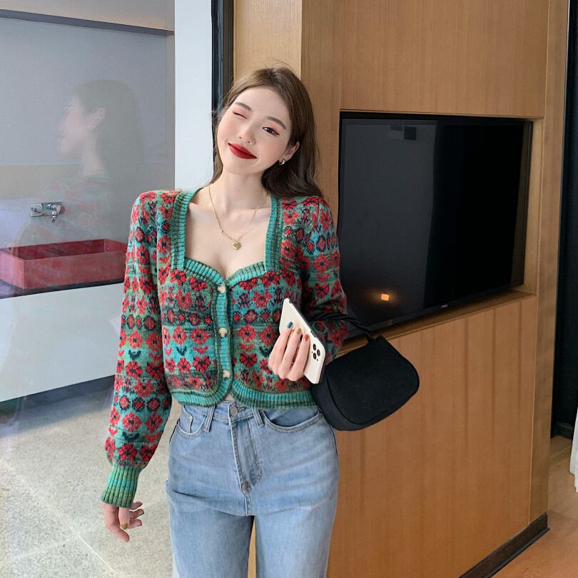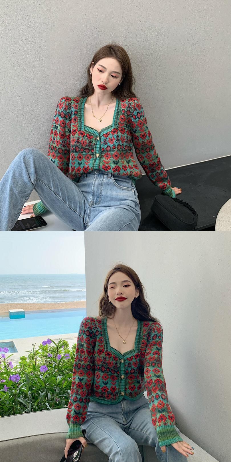 ニットジャケット スプリングサマースタンダードショートセーター カーディガントップス ロング レトロ 春物 夏物 フラワーデザイン セブンプリンセス39200867225
