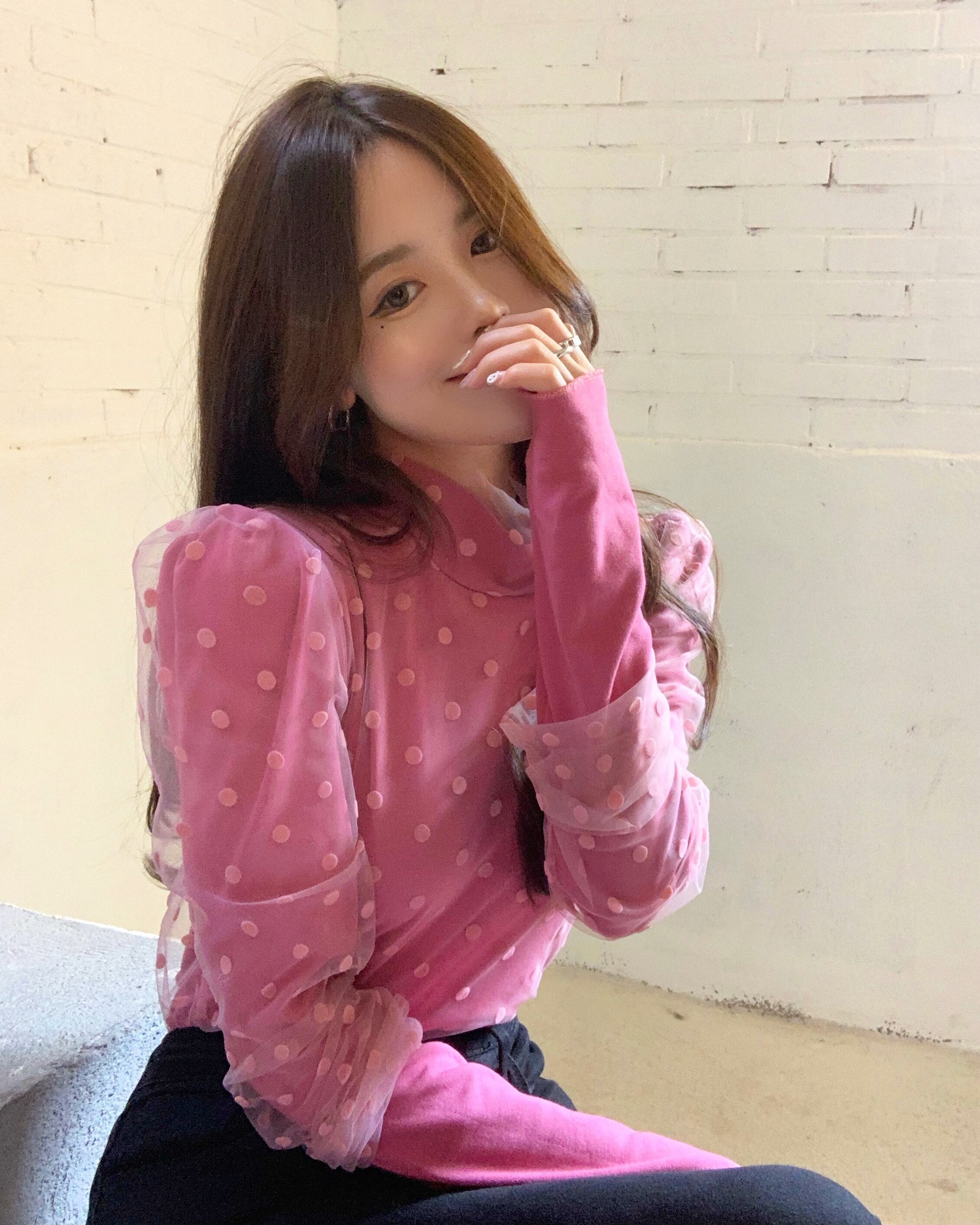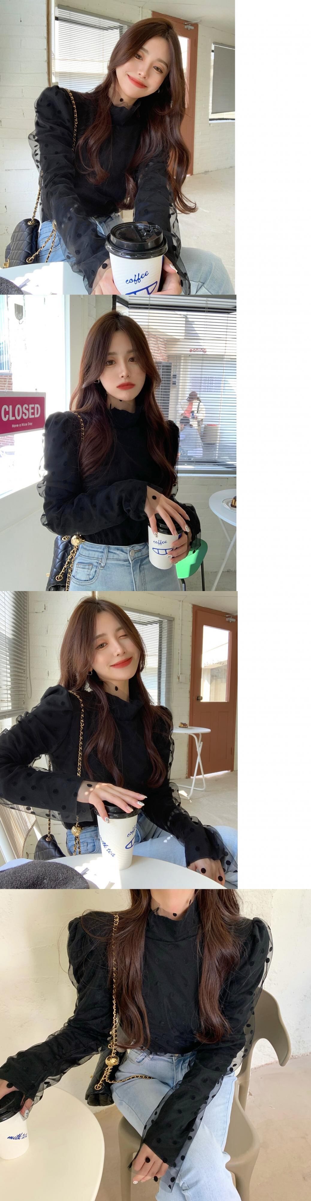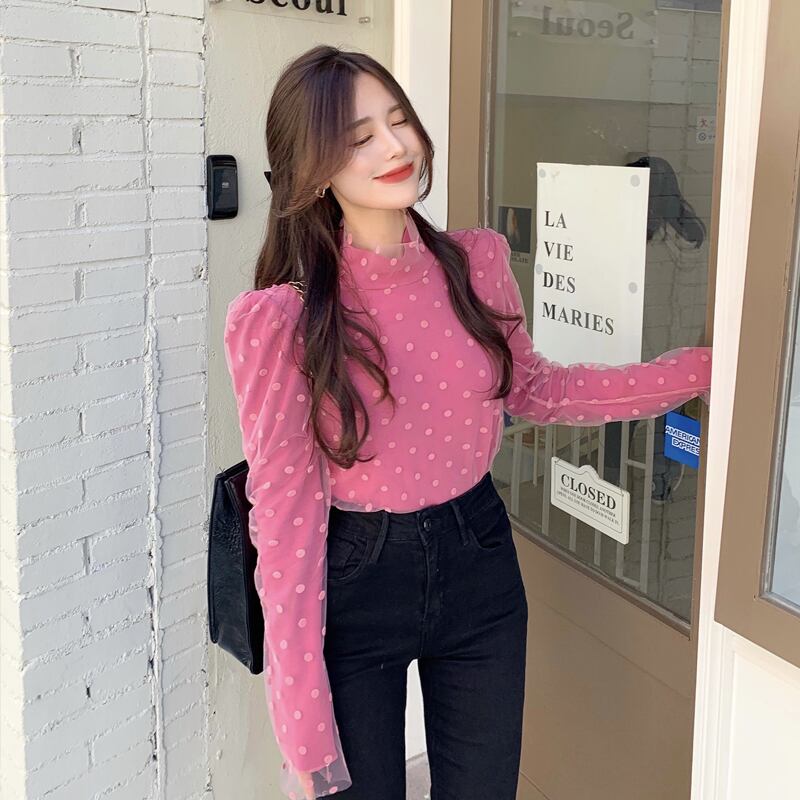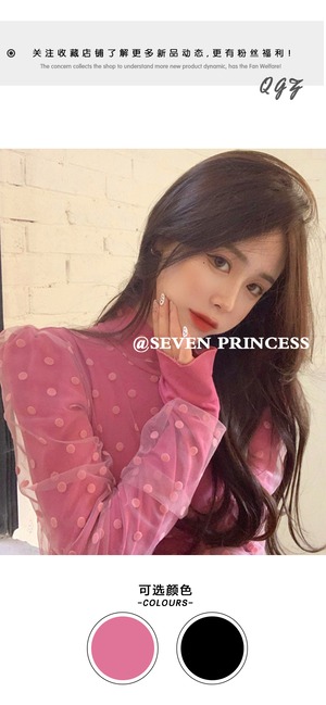 シャツ スプリングサマースタイル薄手メッシュ水玉ブラウス Tシャツ ロング 春物 夏物 セブンプリンセス75509712256