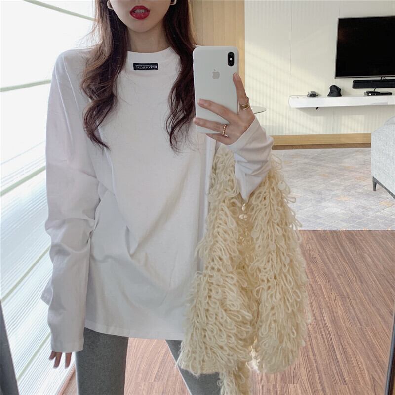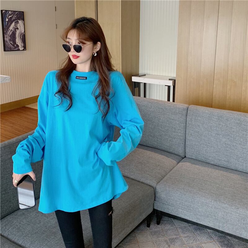 シャツ レディーススプリングサマースタイルルーズラウンドネックTシャツ トップス ロング 春物 夏物 Oネック セブンプリンセス87410521036