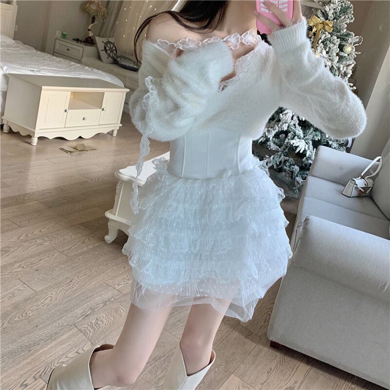 スカート スプリングサマーハイウェストレースショートスタイル薄手Aライン 春物 夏物 セブンプリンセス27862011941