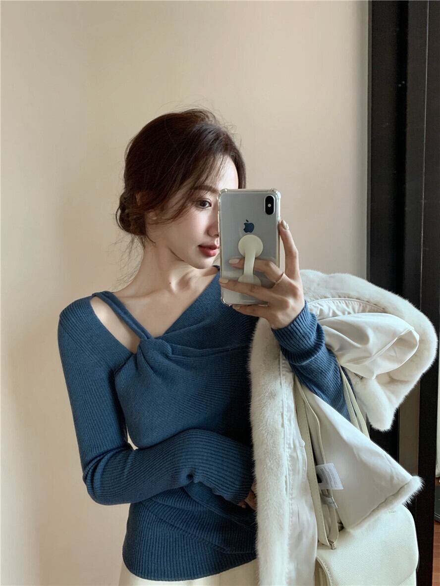 Vネックセーター スプリングサマー薄手ニットシャツ ロング 春物 夏物 セブンプリンセス62478534431